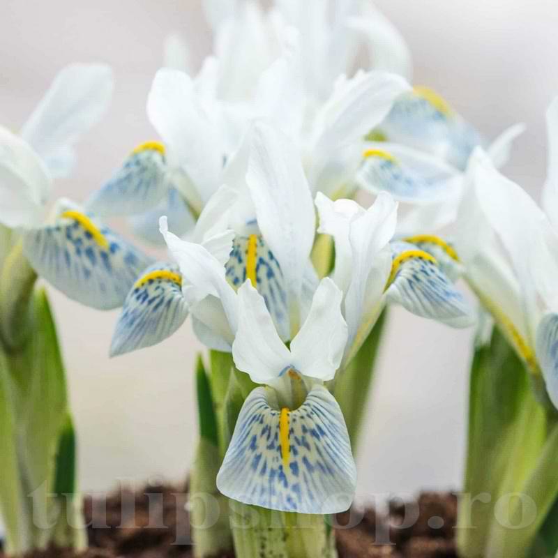 Denumire științifică: Iris Reticulata „Polar Ice”.