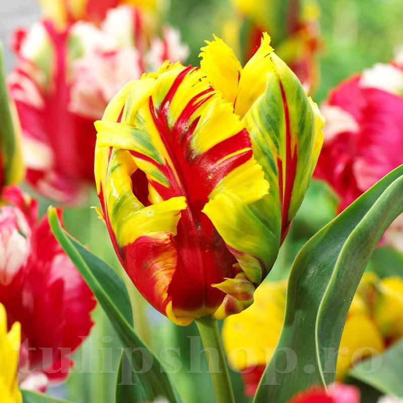 Florile sunt mari și cu petalele zbârcite, caracteristice clasei de lalele papagal.